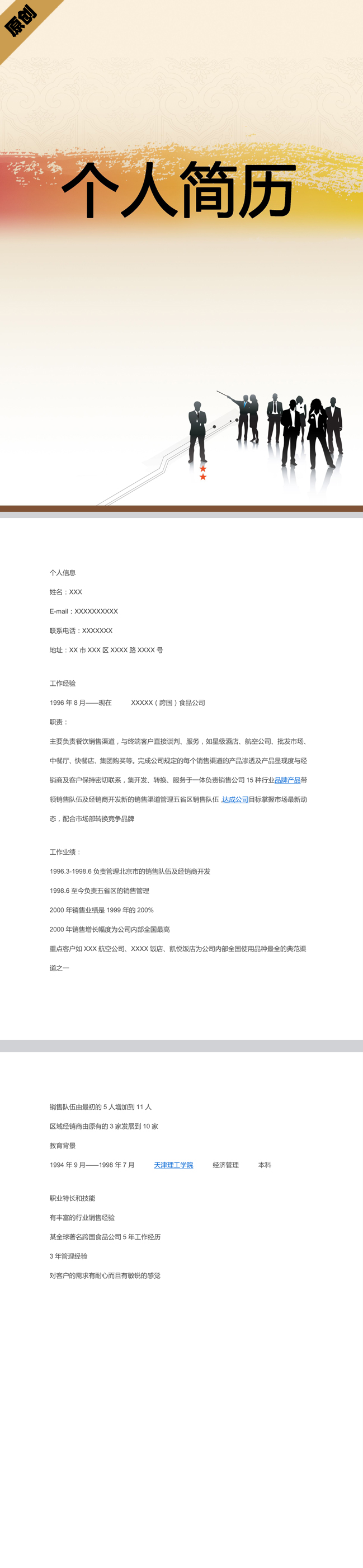 公司销售个人简历模板适用于业务销售岗位求职设计应用!, 公司销售免费个人简历模板 的本展示图片均为真实Word截图,所见即所得,本简历模板免费简洁,适合用于制作各类特色中文简历,如:销售,助理,商务,推广等。.doc格式。
