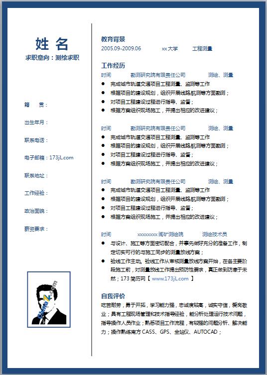 测绘,建筑,绘图,测绘个人简历下载适用于岗位求职使用。, 测绘免费个人简历 的本展示图片均为真实Word截图,所见即所得,本简历模板免费简洁,适合用于制作各类特色中文简历,如:测绘,建筑,绘图等。.doc格式。
