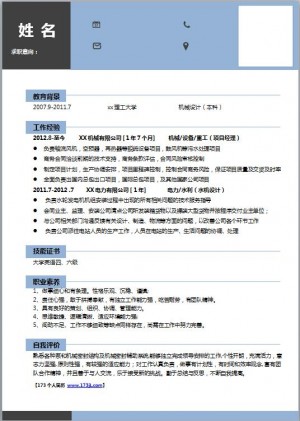 机械免费个人简历模板范文